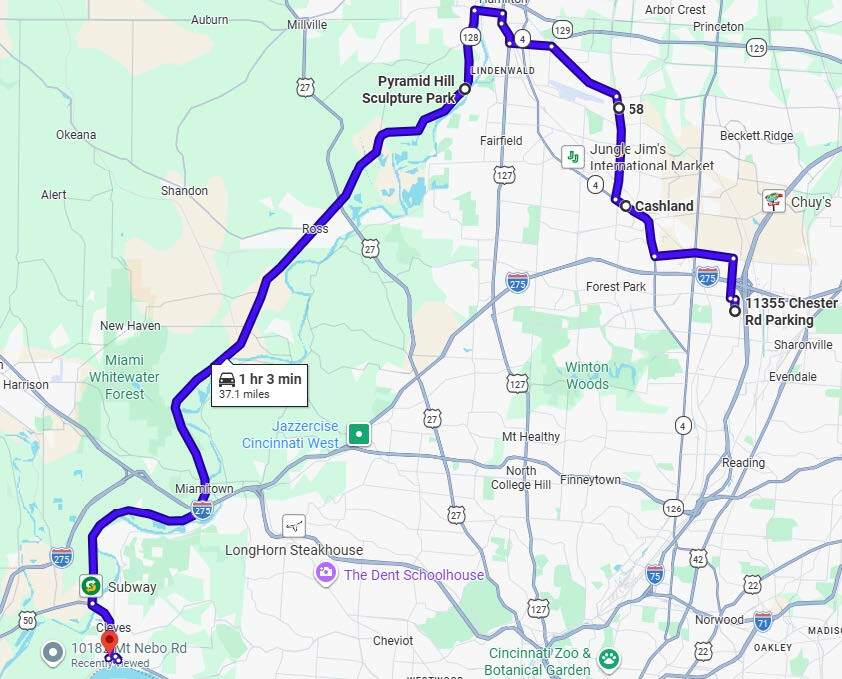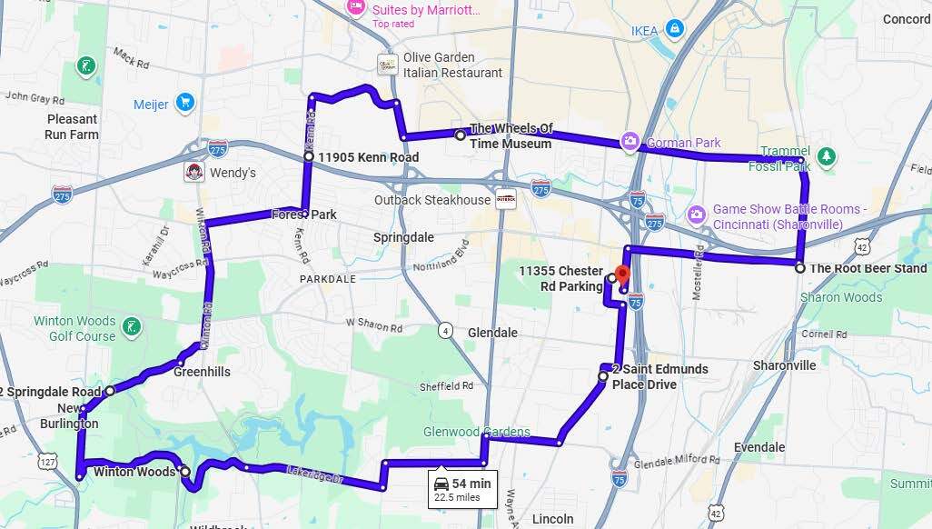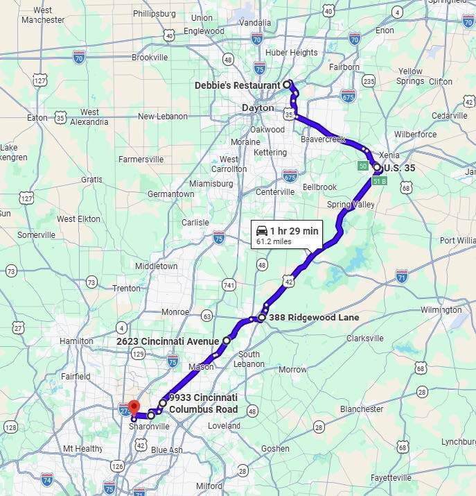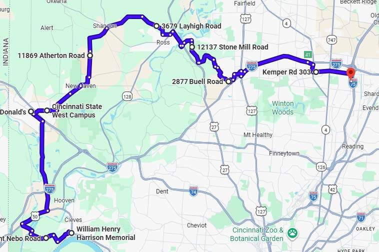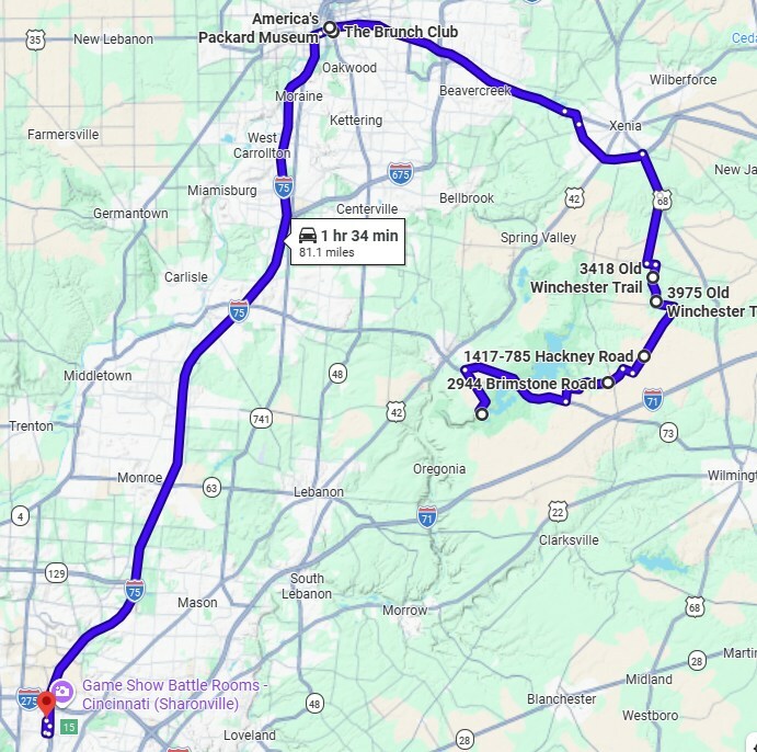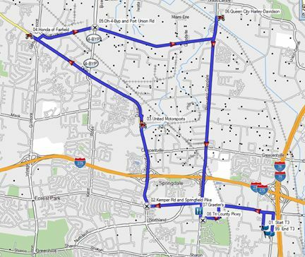 Round Trip: United Motorsports of Fairfield, Ohio Honda of Fairfield, Ohio Queen City Harley-Davidson in West Chester Township, Ohio Graeter's Ice Cream in Cincinnati, Ohio